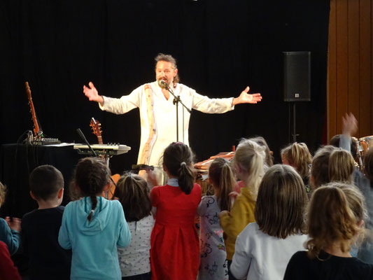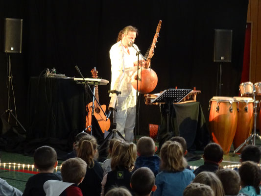 Sur scène le musicien s'accompagne de différents instruments : Balafon, Guitare, Didgeridoo, Djembé, Kalimba, Congas, Océan Drum, Tamborim, Handsonic, Guimbarde ...